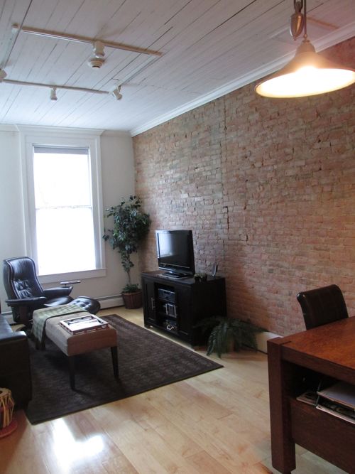 As part of a building-wide repurposing effort, this compact renovated apartment takes advantage of Corning's emerging downtown rental market. The apartment is approximately 800 square feet, thoughtfully designed to highlight the building's rich history and texture. It features a chef's kitchen, large pass-through closets, and a primary stone-clad bathroom. As part of the initiative to restore the Corning Gaffer District, the apartment is adjacent to the firm's office.